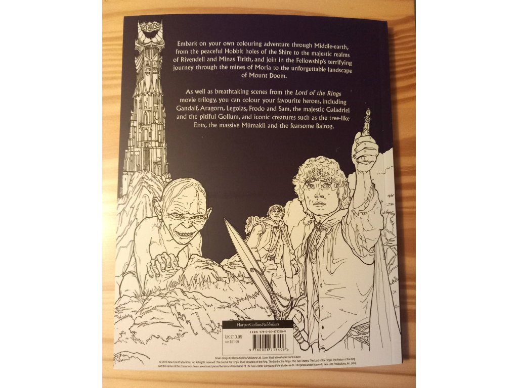Oficiální omalovánky Pána prstenů – vybarvujte oblíbené hrdiny, ikonické lokace a epické scény z filmové trilogie. Skvělý dárek pro fanoušky fantasy a filmu.