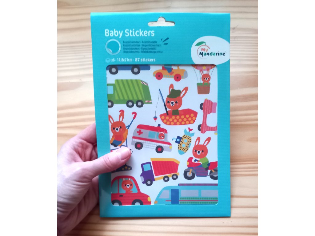 Roztomilé samolepky s dopravními prostředky pro nejmenší děti od 2 let. Auta, náklaďáky i lodě řídí veselý zajíček. Velké, snadno uchopitelné a znovu nalepitelné. Balení obsahuje 87 samolepek.