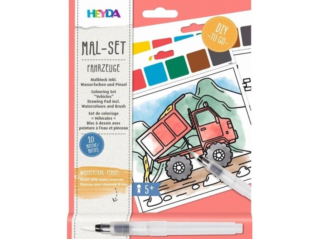 Vodní omalovánky pro děti HEYDA - Vozidla (vodní štětec + barvy)
