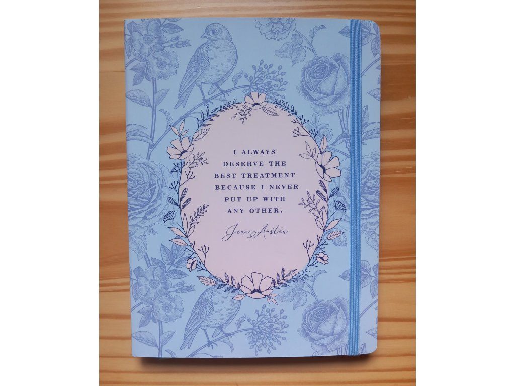 Romantický zápisník pro ženy inspirovaný románem Jane Austen. 240 linkovaných stránek pro poznámky a nápady.